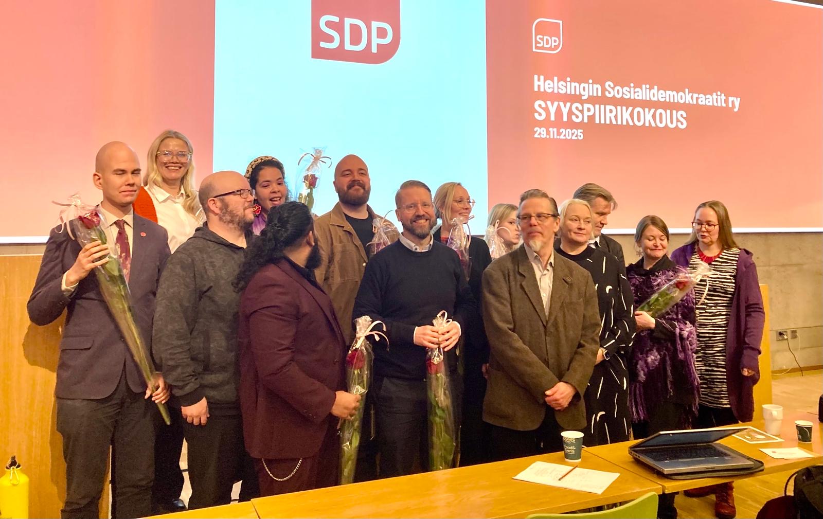 SDP Helsingin piirin syyskokous järjestettiin lauantaina 29.11. Esityslistalla oli poliittisia puheenvuoroja, Helsingin piirihallituksen vaali ja paikallisosastojen aloitteiden käsittelyä. Koillis-Helsingin Sosialidemokraattien Tiina Salo ja Malmin Sosialidemokraattien Tomi Raitio valittiin Piirihallitukseen.