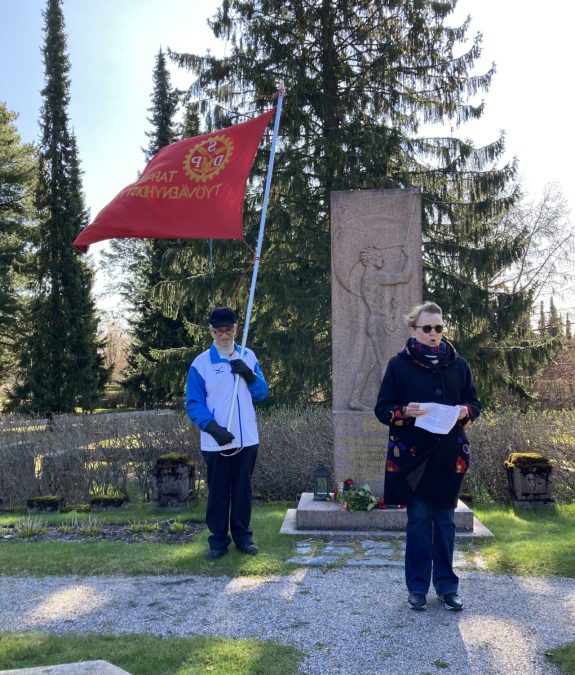 Me olemme saaneet elää vaurastuvassa Suomessa. Me olemme saaneet elää demokratiassa. Me olemme saaneet elää maailman mittakaavassa hyvin tasa-arvoisessa maassa, hyvinvointivaltiossa. Tänne haudattujen tovereiden tavoitteina olivat: leipä – ravinto, kunnia – tasa-arvo, henki – hyvä elämä, jotka ovat mahdollisia kaikille. Me olemme saaneet nuo mahdollisuudet.
