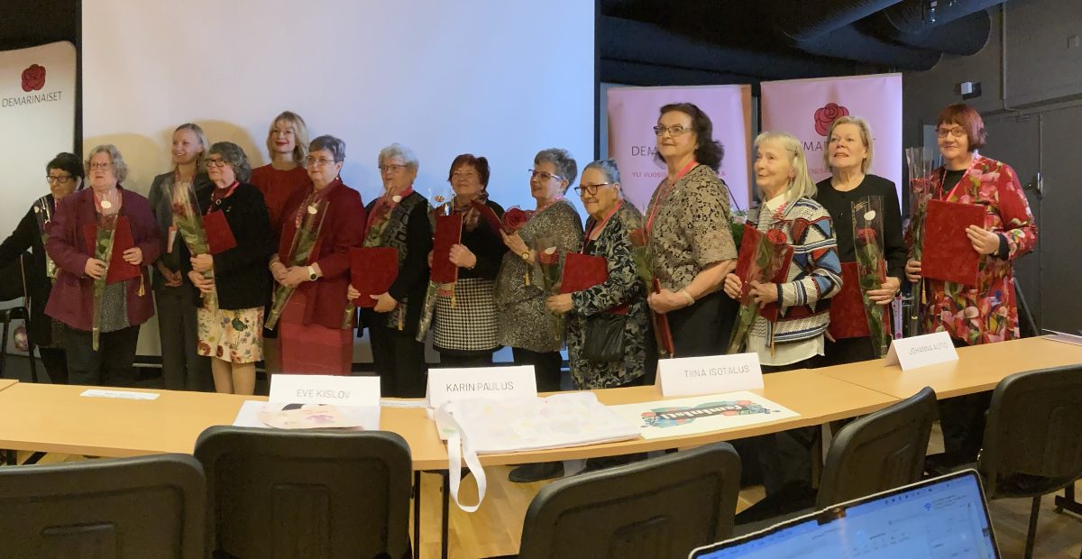 Seija sai tänään, sunnuntaina 10.11.2024 Seinäjoella liittokokouksessa kunniajäsenen kirjan ja ruusun, yhdessä 11 muun kunniajäseneksi kutsutun naisen joukossa.