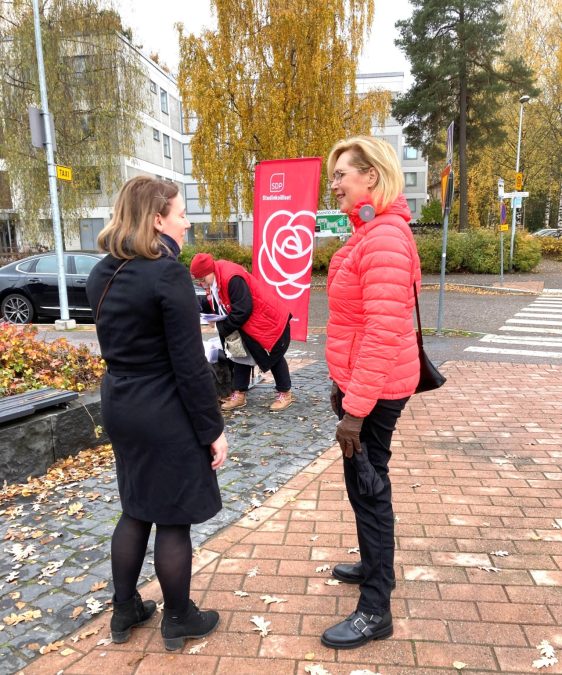 Jakomäessä paikallisten kanssa keskustelemassa oli myös työministeri Tuula Haatainen ja puhe meni tietysti työllisyystilanteeseen. ”Työllisyystilanne on tällä hetkellä historiallisen hyvä. Nyt on tehtävä kaikki sen eteen, että työllisyystilanne säilyy hyvänä myös mahdollisen tulevan taantuman aikana.” totesi ministeri Haatainen.