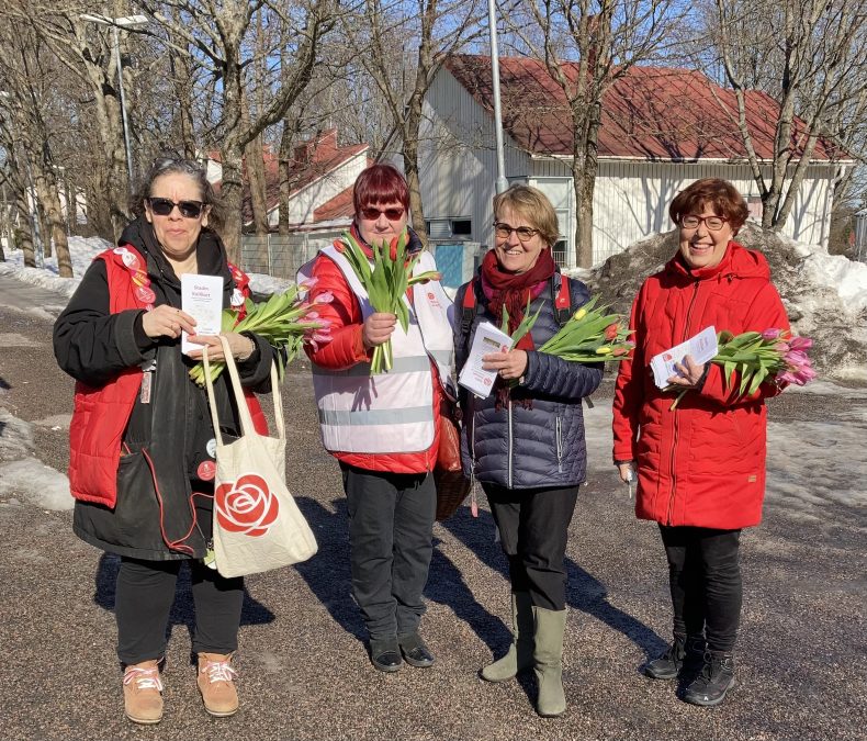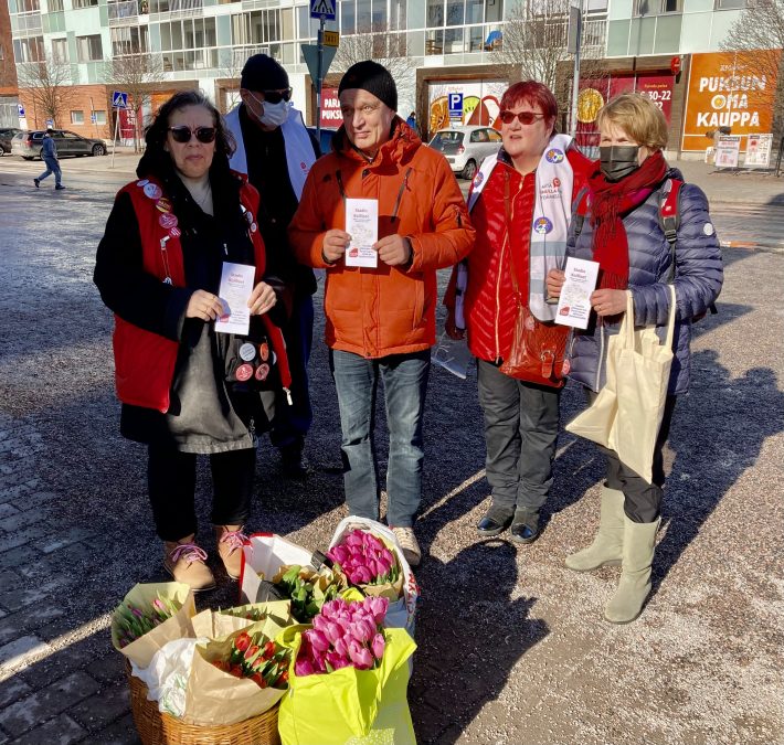 Malmin, Tapanilan ja Koillis-Helsingin demariosastot jakoivat yhteensä kymmenen henkilön voimin lähemmäs 400 tulppaania ja Stadinkoillisten esitettä Pukinmäen, Malmin, Tapanilan ja Puistolan asemien lähistöllä. Halusimme ilostuttaa tulppaanilla tasa-arvon päivänä ohikulkijoita.